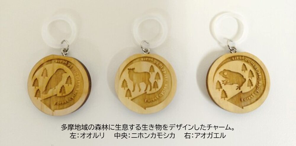 今年の8月から「とうきょうの木®ブランドをつくろう!プロジェクト」には、高校生・専門学校生・大学生が参加し、未来へつながる森林循環をイメージして、とうきょうの木®をアピールするチャームのデザインをしました。花粉の少ない森づくり募金にご協力いただいた方に、このチャームをプレゼントすることで、とうきょうの木®の存在を知っていただくきっかけになり、森への経済的な流れも実現しました。