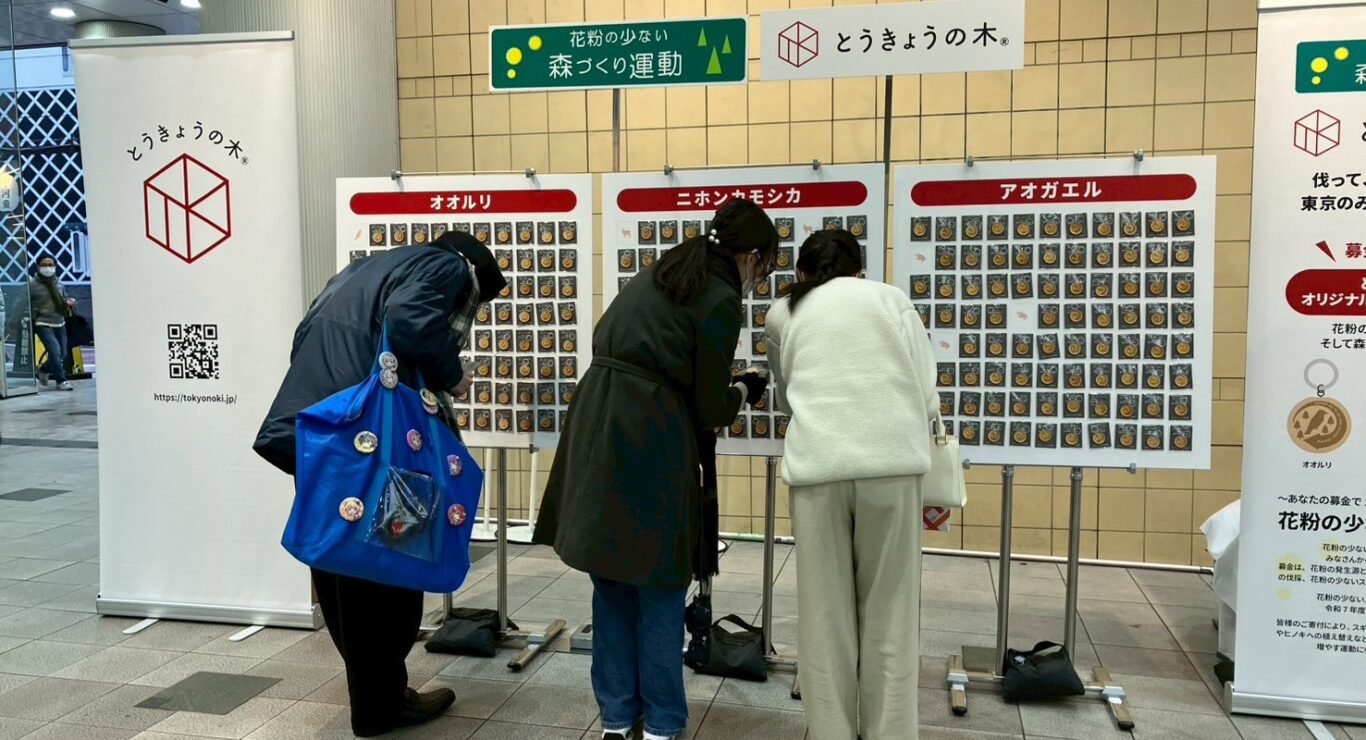 公益財団法人東京都農林水産振興財団と東京都が進める「花粉の少ない森づくり運動」の募金活動が、12月14日(日)・15日(月)に渋谷マークシティイベントスクエアで行われ、「とうきょうの木®ブランドをつくろう!プロジェクト」で、Z世代の若者と共創・製作した とうきょうの木®のチャームが、募金された方へプレゼントされました。