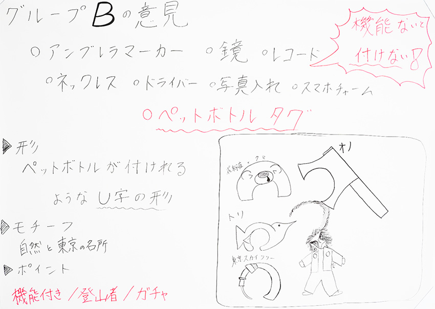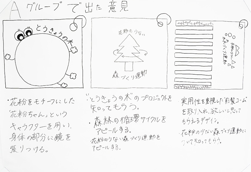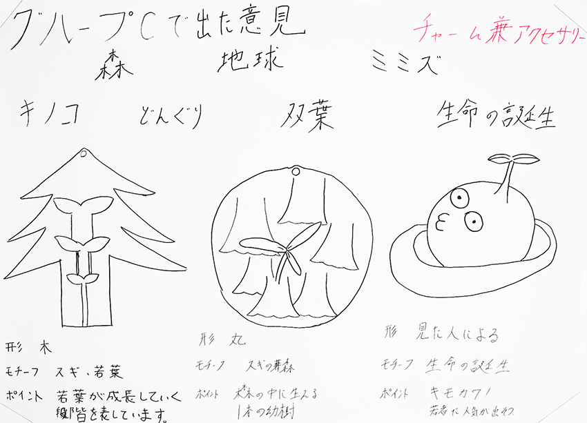 今後、とうきょうの木® に活用してブランドの存在を訴えるような、チャームのデザインを参加者で考えました。各グループで意見を出し合い、多くのプランが提案されました。